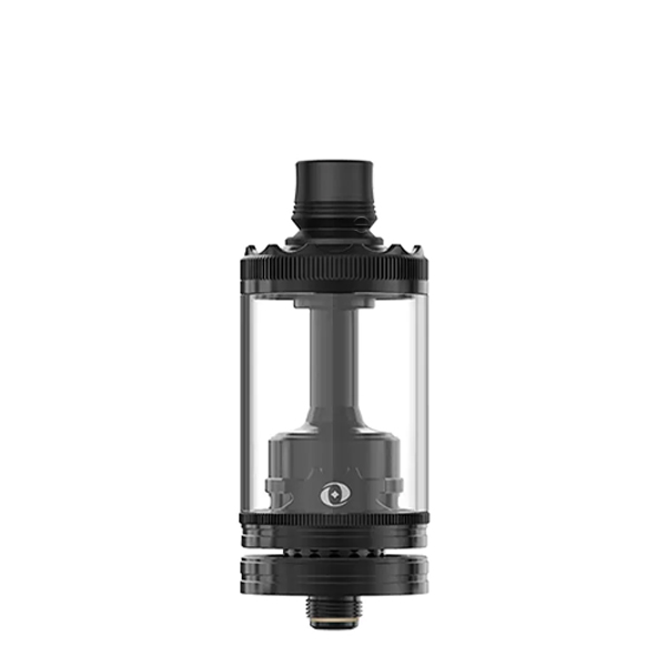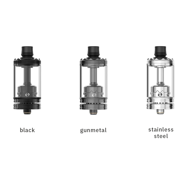 Der Borosilikatglas-Tank des Revorie bietet Platz für stolze 5.0 ml Liquid, sodass man nur selten Liquid Nachfüllen muss. Dank des Top-Fill, das sich unter der griffig gerändelten Top-Cap mit praktischem Bajonett-Verschluss verbirgt, geht der Tankvorgang dabei angenehm leicht und schnell von der Hand. Die Top-Cap verfügt über eine Aufnahme für 510er Drip Tips und ein ergonomisch geformtes DL und RDL Drip Tip aus schwarzem Delrin sind im Lieferumfang bereits enthalten.