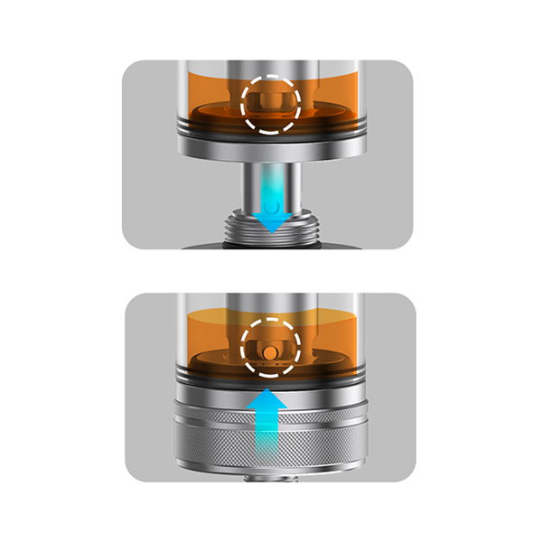 - Coilwechsel auch bei vollem Tank möglich dank selbstschließender Liquidzufuhr