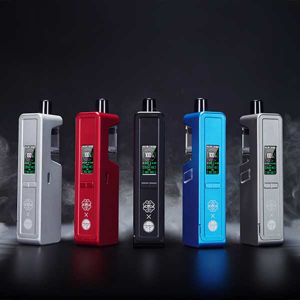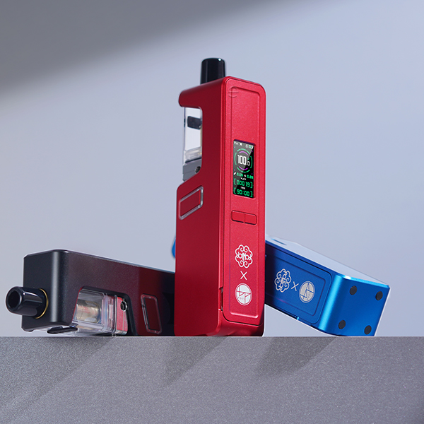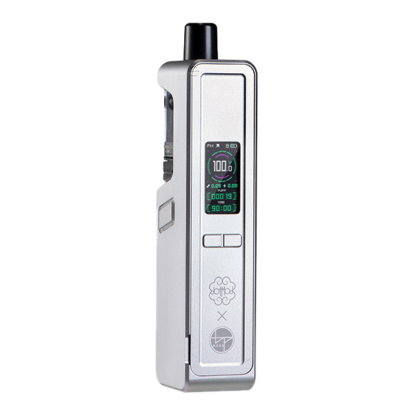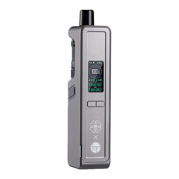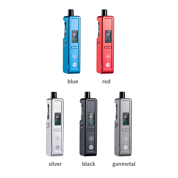 Die Aktivierung und Bedienung erfolgt über den seitlich positionierten und perfekt in das Design integrierten Feuertaster, der von einer informativen RGB Indikator-LED umrahmt wird und dank der Form des Mods jederzeit komfortabel zu erreichen ist. Zwei Up/Down Tasten unterhalb des 0.96 Zoll großen TFT Farbdisplays auf der Front des durchgestylten AIO Kits lassen sämtliche Einstellungen und die Menünavigation angenehm leicht von der Hand gehen. Über das brillante Display hat man alle relevanten Informationen wie Akkustand, Modus, Leistung, Widerstand, Spannung, Zugdauer und Puff-Counter jederzeit perfekt im Blick. Dabei bietet es neben einer individuellen Helligkeitsregulierung auch fünf verschiedene Farbschemen, mit denen das farbenfrohe Display den eigenen Vorlieben angepasst werden kann. Ein Stealth Mode bietet zudem die Möglichkeit, die Aktivität des Displays während des Dampfens zu unterbinden, wenn man gerne etwas unauffälliger unterwegs sein möchte. Als Informationsquelle dient dann nur noch die Indikator-LED um den Feuerbutton herum, die optisch über den Akkustand sowie über verschiedene Statusmeldungen informiert.