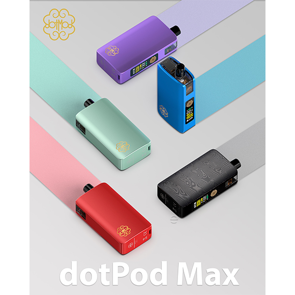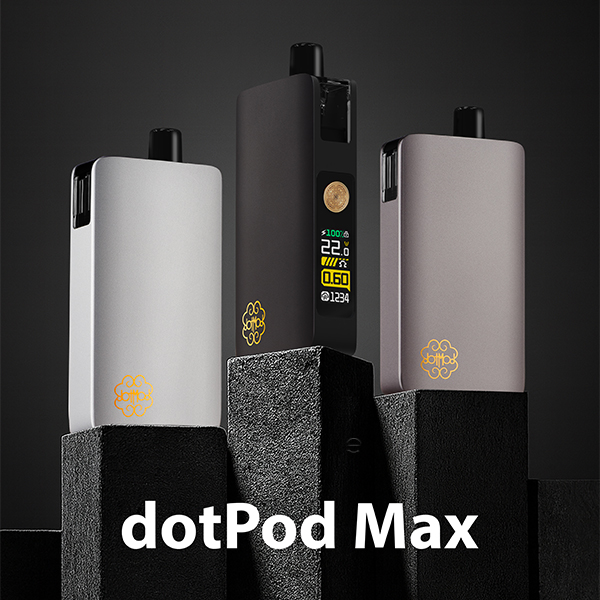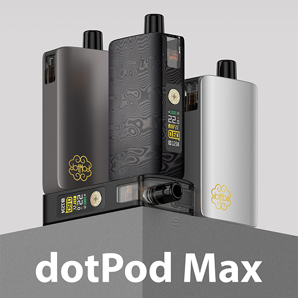 Mit der neuen Version des dotPod Max Kits präsentiert dotMod das beliebte Pod-System in einer neuen und noch einmal verbesserten Variante. Die kompakte Größe und das ergonomische Box-Design des Vorgängers wurden dabei ebenso beibehalten, wie der hochwertige Body aus eloxiertem Aluminium, der das Kit angenehm leicht und zugleich sehr widerstandsfähig macht. Der multifunktionale Feuerbutton im typischen dotMod Look macht die Bedienung des schicken Kits zu einer unkomplizierten Angelegenheit und mit seinem stärkeren Akku sowie einem noch größeren und nun auch farbenfrohen Display verspricht das Kit jetzt noch mehr Dampfspaß. Dank der maximalen Ausgangsleistung von bis zu 60 Watt sowie der Kompatibilität zu den dotPod Max Pods mit integrierten oder wechselbaren Coils verspricht auch die neue Version wieder ein MTL, RDL und DL Dampferlebnis der Extraklasse!