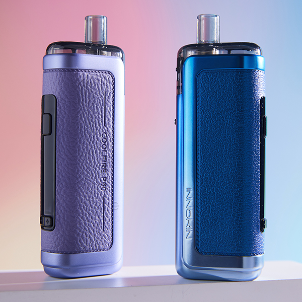 Innokin's Coolfire P60 Kit ist ein extrem leistungsstarkes und zugleich ergonomisch-kompaktes und schlankes Pod-System mit einer Größe von 113.5 x 39.95 x 22.65 mm und einem Gewicht von etwa 136.0 g. Mit seinem hochwertigen und robusten Body aus einer Zink-Legierung sowie einem griffigen Soft-Leder Einband liegt das Kit toll in der Hand und zieht in 6 trendigen Farbvarianten die Blicke auf sich. Dabei vereint es extreme Leistungsfähigkeit und modernste Technik auf kleinem Raum. Ob klassisches Mund-zu-Lunge (MTL) Dampfen oder ein offeneres RDL und DL Dampferlebnis – das Coolfire P60 Kit beherrscht alles und weiß sowohl erfahrene Dampfer als auch Einsteiger von sich zu begeistern.