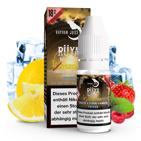 Mit dem Nikotinsalz-Liquid Rüya aus der neuen Intense Reihe von Hayvan Juice genießt du den beliebten Geschmack jetzt noch intensiver und ausdrucksstärker. Dieses fruchtige Aromahighlight ist wie geschaffen für warme Tage und vereint aromatisch-süße, saftige Erdbeeren mit sommerlichen und ebenfalls süßen Himbeeren zu einer verführerischen Komposition. Schon diese Kombination begeistert mit ihrer harmonischen Fruchtigkeit und einem vollmundigen Beerencharakter. Doch Rüya geht noch einen Schritt weiter und bringt mit spritziger, belebender Zitrone auch eine angenehme Säure ins Spiel, während frische, grüne Minze mit ihren charakteristisch aromatischen und dezent-süßen Noten für eine spürbare Leichtigkeit sorgt. Eine zusätzliche Portion Cooling rundet das Profil perfekt ab und durchströmt Mund und Rachen mit einer erfrischenden Kühle. Dank des überdosierten Aromaanteils entfaltet sich jede Nuance besonders intensiv und sorgt für ein unvergleichliches Dampferlebnis. Rüya überzeugt mit einem perfekt ausbalancierten Zusammenspiel aus Süße, Säure und Frische – sommerlicher Genuss pur.