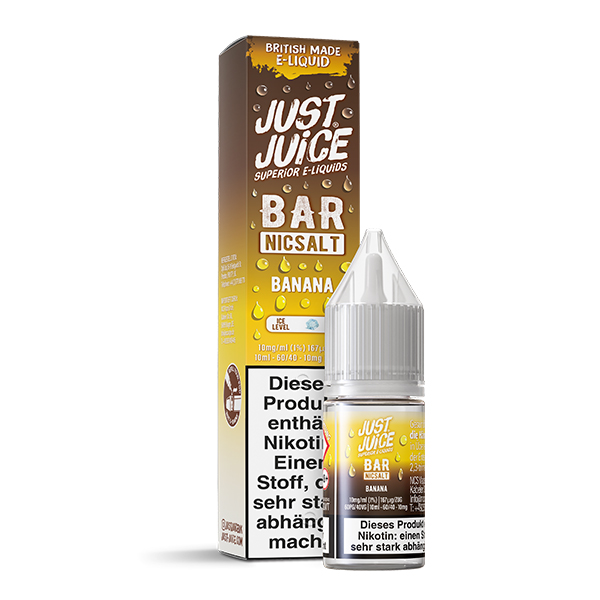 In ihrer Bar Range präsentieren Just Juice aus dem schönen Großbritannien uns geschmacksintensive Nikotinsalz-Liquids, die sich perfekt für die Verwendung in Pod-Systemen eignen. In diesem Liquid treffen exotische und zartcremige Bananen auf einen dezenten Frischehauch und verschmelzen zu einem fruchtig-frischen und cremig-zarten Dampferlebnis. Erlebe den intensiven und aromatisch-süßen Geschmack reifer und leuchtend gelber Bananen, während eine angenehme Frischenote bei jedem Zug die Sinne belebt. Ein absolutes Highlight für Fans der gelben Tropenfrüchte!