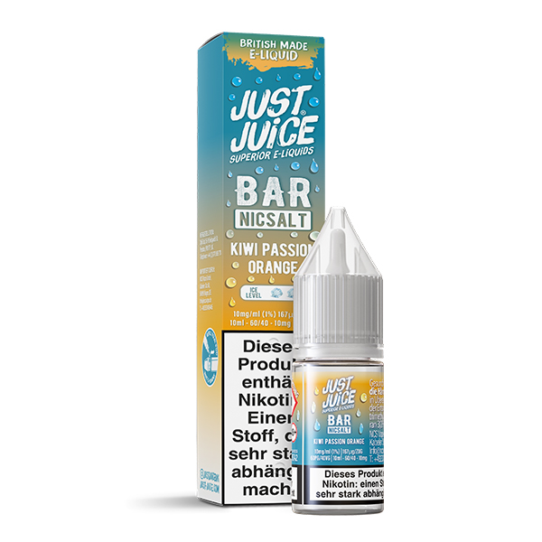1 x JUST JUICE BAR RANGE Kiwi Passion Orange Nikotinsalz Liquid 10 ml