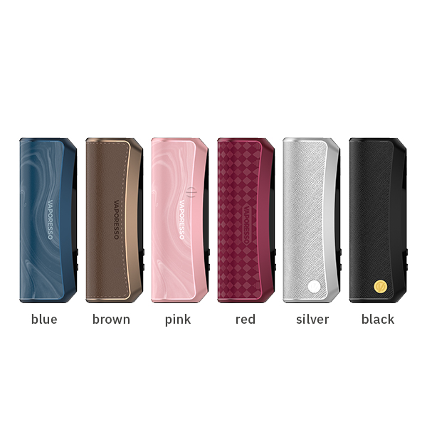 Mit dem GTX One Pro präsentiert Vaporesso einen sehr kompakten Mod mit integriertem Akku, der ideal für schlanke und nicht zu leistungshungrige Verdampfer mit 510er Gewinde ist, wie sie in klassischen MTL Setups zum Einsatz kommen (z.B. der Vaporesso XTank T). Seine extrem kompakte Bauweise und seine ergonomische Formgebung machen den GTX One Pro Mod zu einem echten Handschmeichler. Je nach Variante wird der Mod dabei von einem weichen Silikoneinband oder einem soften PU-Leder Einband umgeben, wodurch er noch angenehmer und vor allem sicher in der Hand liegt. Eine zusätzliche Silikonumrandung an der Unterseite des Mods sorgt zudem dafür, dass er jederzeit sicher und geräuscharm abgestellt werden kann. In 6 verschiedenen Varianten zieht der GTX One Pro Mod mit seinem modernen und zugleich auch klassisch-eleganten Design die Blicke auf sich.