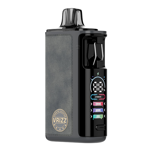 Mit dem Vrizz 2 Kit präsentiert VooPoo ein kompaktes und extrem leichtes Pod-System, das die einfache Handhabung eines Disposables, die Ausdauer eines sogenannten “Big-Puff Device“ und die Vorzüge eines modernen Open Pod-Systems in sich vereint. So glänzt das nur 101.3 x 50.2 x 25.4 mm große Kit mit einer absolut einfachen Bedienung, drei verschiedenen Pod-Varianten mit einem Fassungsvermögen von gigantischen 15 Millilitern, einem informativen Display und einem wiederaufladbaren 1350mAh Akku. Hierdurch verspricht das Vrizz 2 Kit schier endlose Vape-Sessions bei einer einfachen Handhabung, die keinerlei Fragen aufwirft. Das kompakte Pod Kit ist in verschiedenen Farb- und Materialvarianten erhältlich und je nach Modell mit modern designten Aluminium Panels oder einem griffigen Kunstleder Einband versehen, der dem Kit ein luxuriöses Erscheinungsbild und ein tolle Haptik verleiht. Das Vrizz 2 Kit ist perfekt für den Einsatz unterwegs und kann dank einer integrierten Halterung schnell mit einem Lanyard (nicht enthalten) verbunden und somit auch “handsfree“ um den Hals getragen werden.